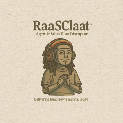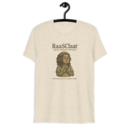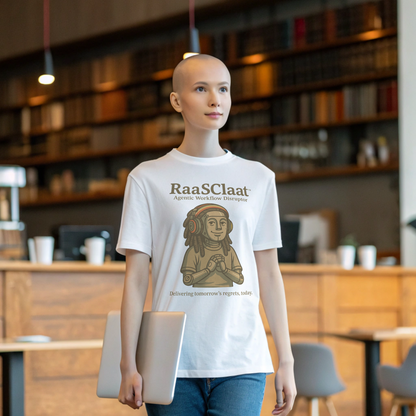 Introducing RaaSClaat, the agentic AI disruptor no one asked for—but your manager just approved on Slack after a 5-minute sales pitch. Optimized for chaos, dressed in calm. This vintage-soft satire tee mocks the future of work with precision stitching and existential dread.